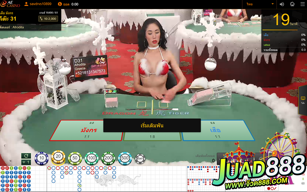 การเล่นไพ่เสือมังกรที่ Sexy Gaming กับเว็บ JUAD888.com นี้ ท่านจะไม่ต้องกังวล เพราะว่าไม่ต้องเรียนรู้วิธีการเล่นใหม่ เล่นได้เหมือนเดิม ไม่ต่างกันเลย ให้ท่านนั้นได้สนุกสนาน และเล่นง่ายได้ด้วยความรวดเร็วที่สุด เพราะว่ายังคงเดิมพันด้วยไพ่เพียงใบเดียวเท่านั้น เล่นเกมส์นี้จะได้รับเงิน ง่ายและเร็วอย่างมาก เพียงท่านเข้ามาร่วมสนุกด้วยการเลือกมาที่ห้องค่ายนี้ ท่านจะได้พบกับดีลเลอร์สาวสวยสุดซ็กซี่ที่ท่านนั้นต้องการ และเร้าใจท่านตลอดเวลา